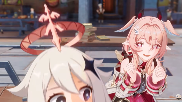 - Munculnya karakter perempuan berwujud chibi/kecil bervision Anemo, yang sebelumnya sudah sempat terlihat dalam silhouette karakter playable.